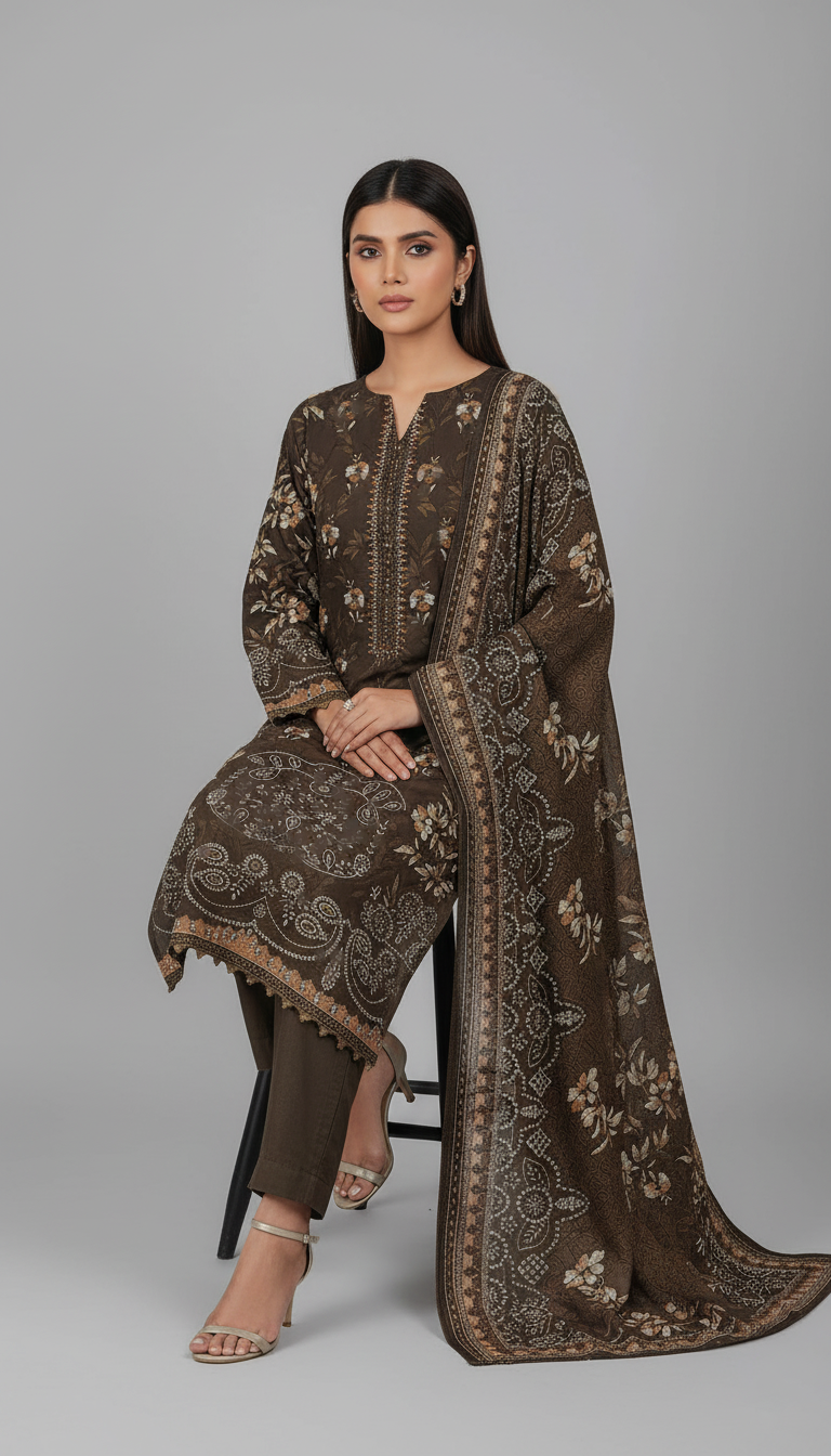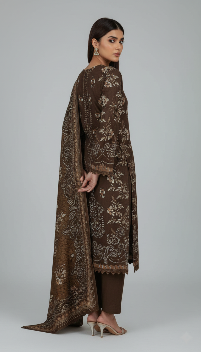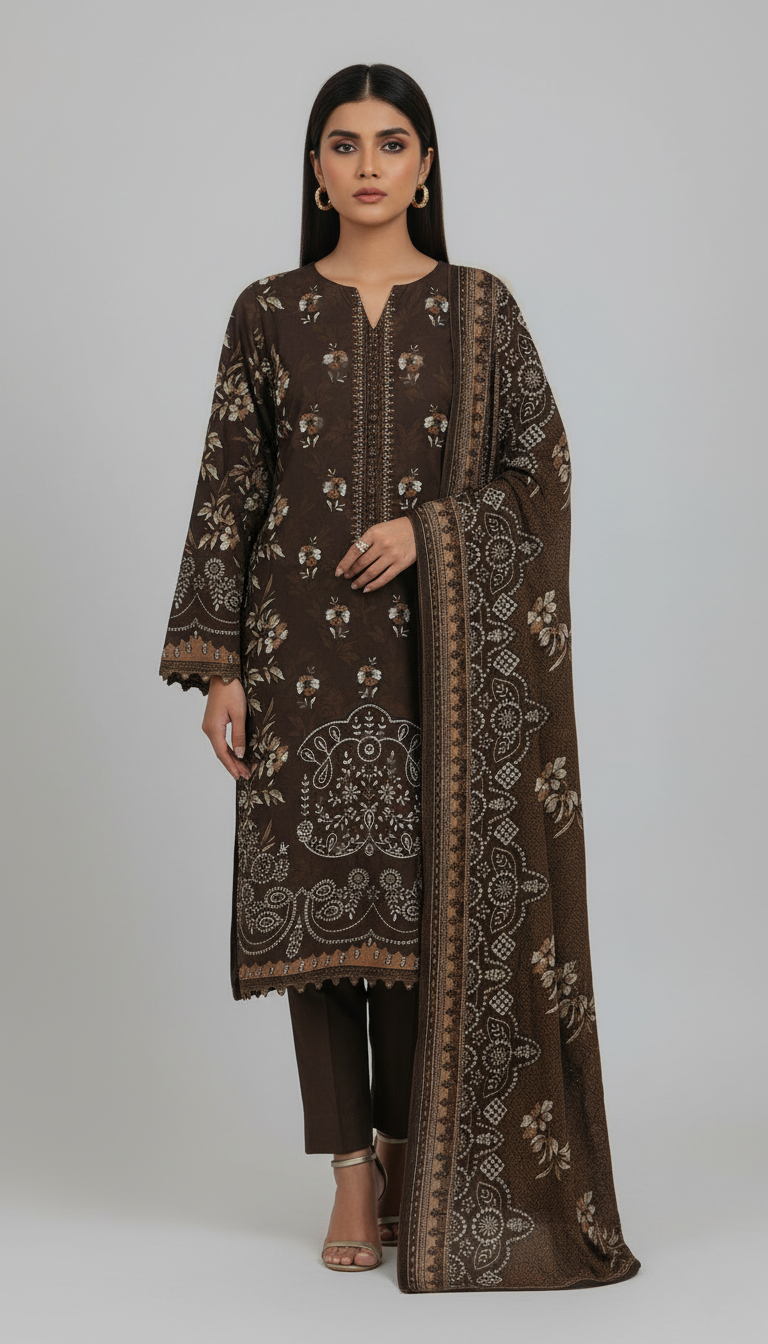 Style that speaks louder than words with this embroidered three-piece from the latest unstitched Winter Collection, crafted for vibrant style and effortless comfort.