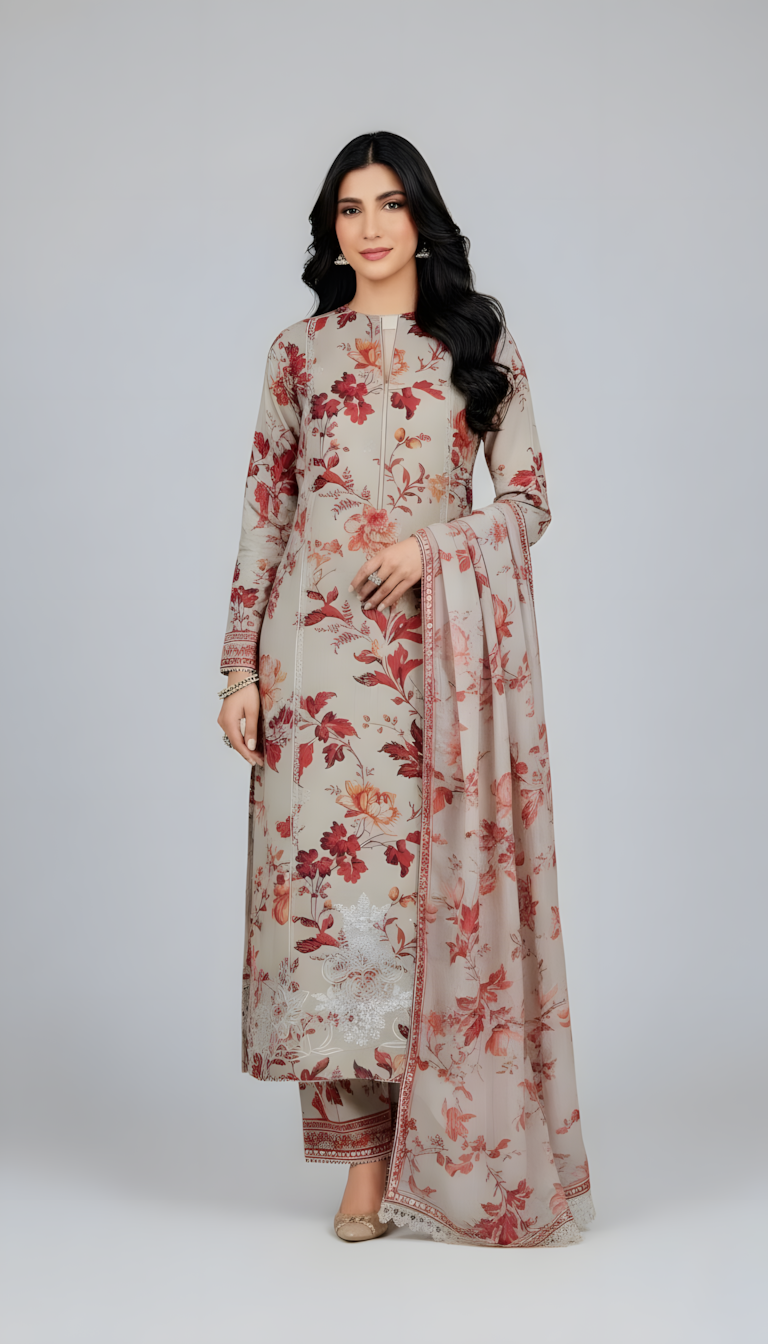 Style that speaks louder than words with this embroidered three-piece from the latest unstitched Winter Collection, crafted for vibrant style and effortless comfort.