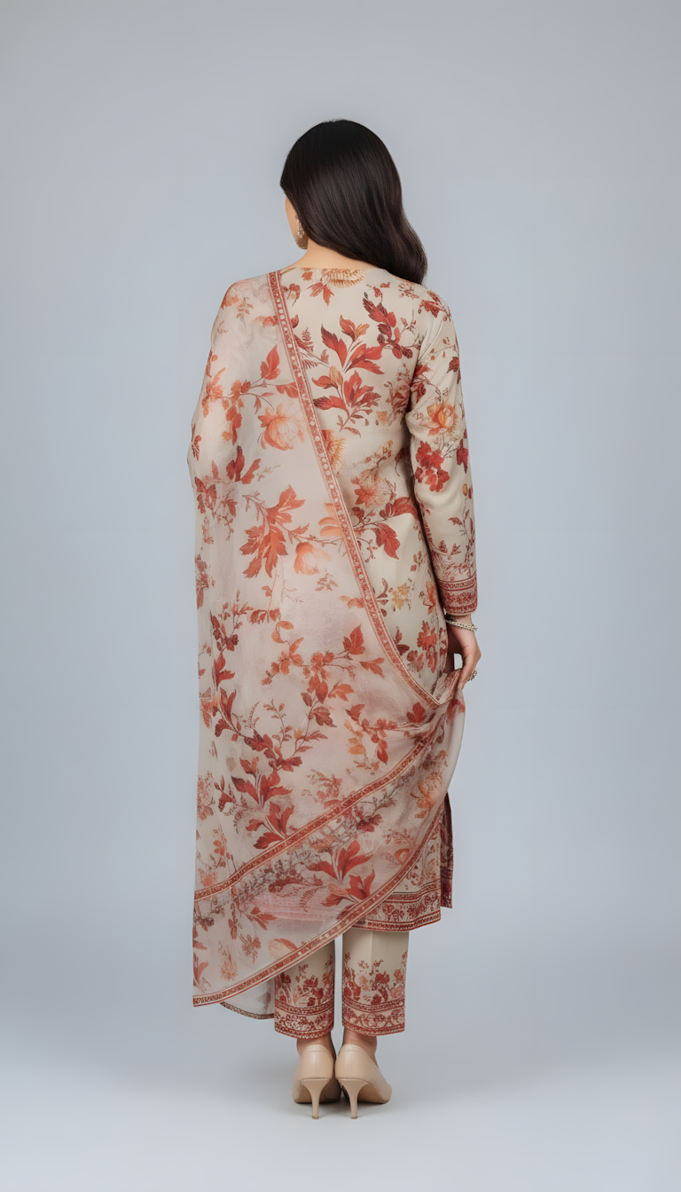 Ethnic Style Shirt with Trousers And Dupatta – unstitched