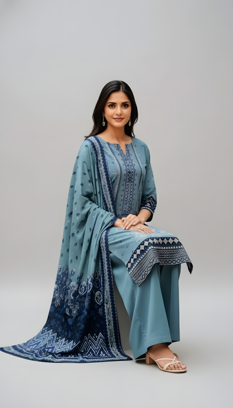 Ethnic Style Shirt with Trousers And Dupatta – unstitched